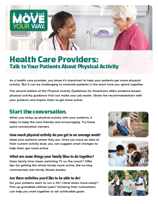 Move Your Way also has tools and resources for health care providers and other professionals. Check out the full set of Move Your Way materials for professionals.